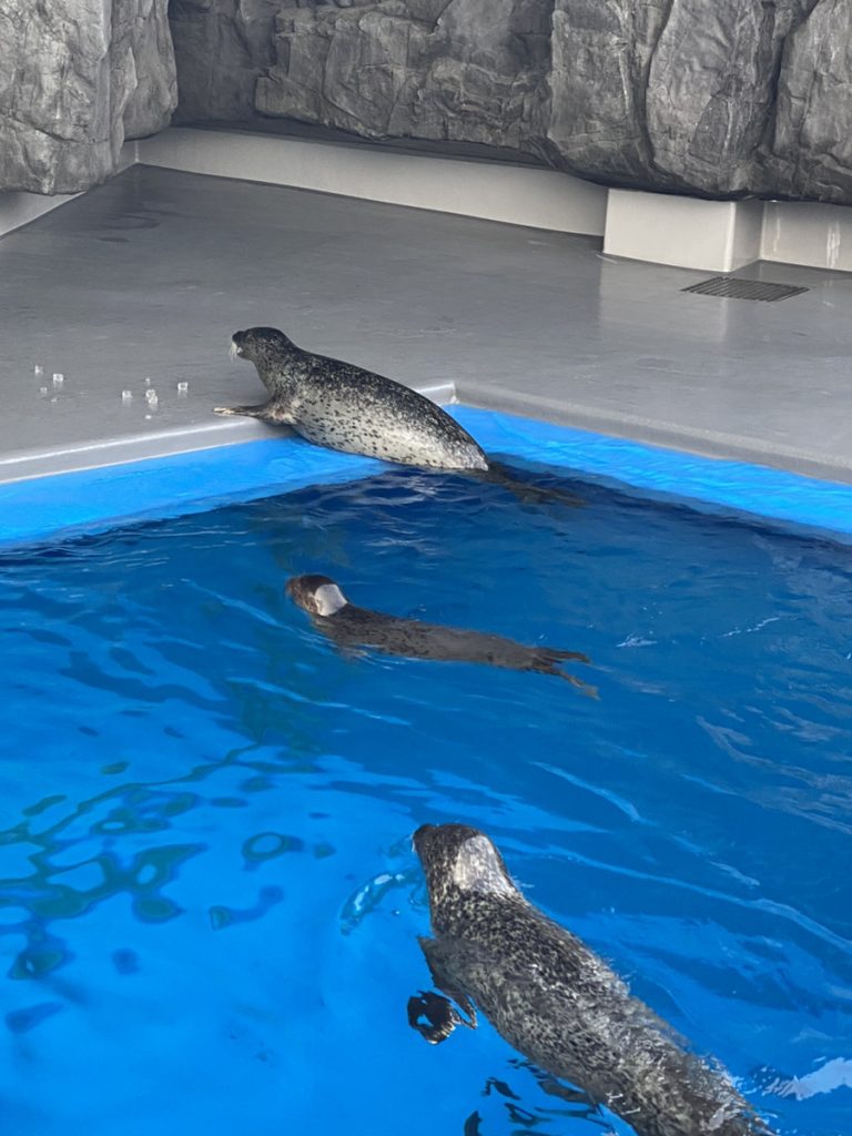 六甲の河川や瀬戸内海を再現したエリアや、サンゴ礁、クラゲの他にアシカやウミガメ、ペンギンが見られるエリアもありました🌊
