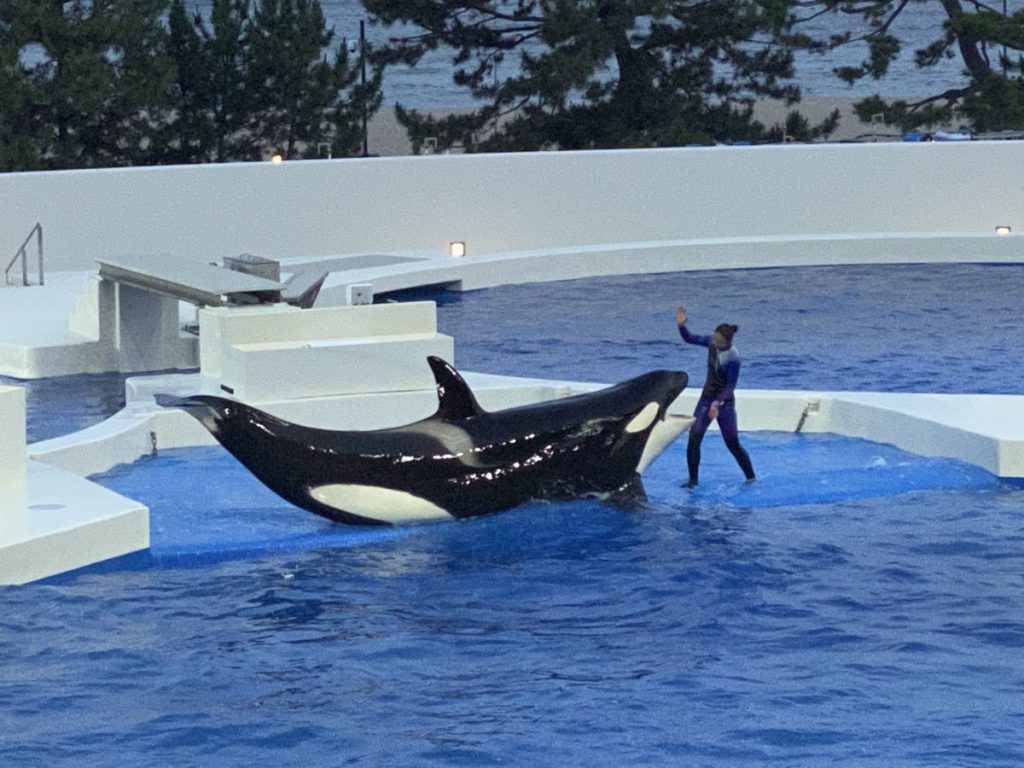 お姉さんが水をかけるようにシャチをあおるのもあって、前の席の方はびしょ濡れでした💦